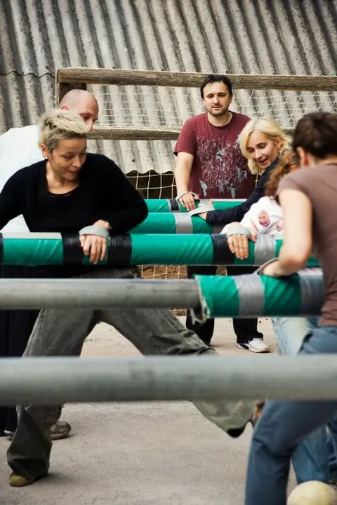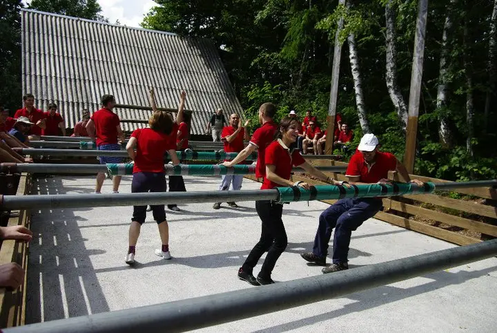 Gigantska verzija stolnog nogometa u kojoj igrači postaju figurice! U Rizvanuši kraj Gospića u Lici postavljamo napuhani teren s “šipkama” za koje se igrači drže te zajednički pomiču lijevo-desno. Pravila su jednostavna, smijeha je puno, a aktivnost je sigurna i savršena za timove, škole i obitelji.